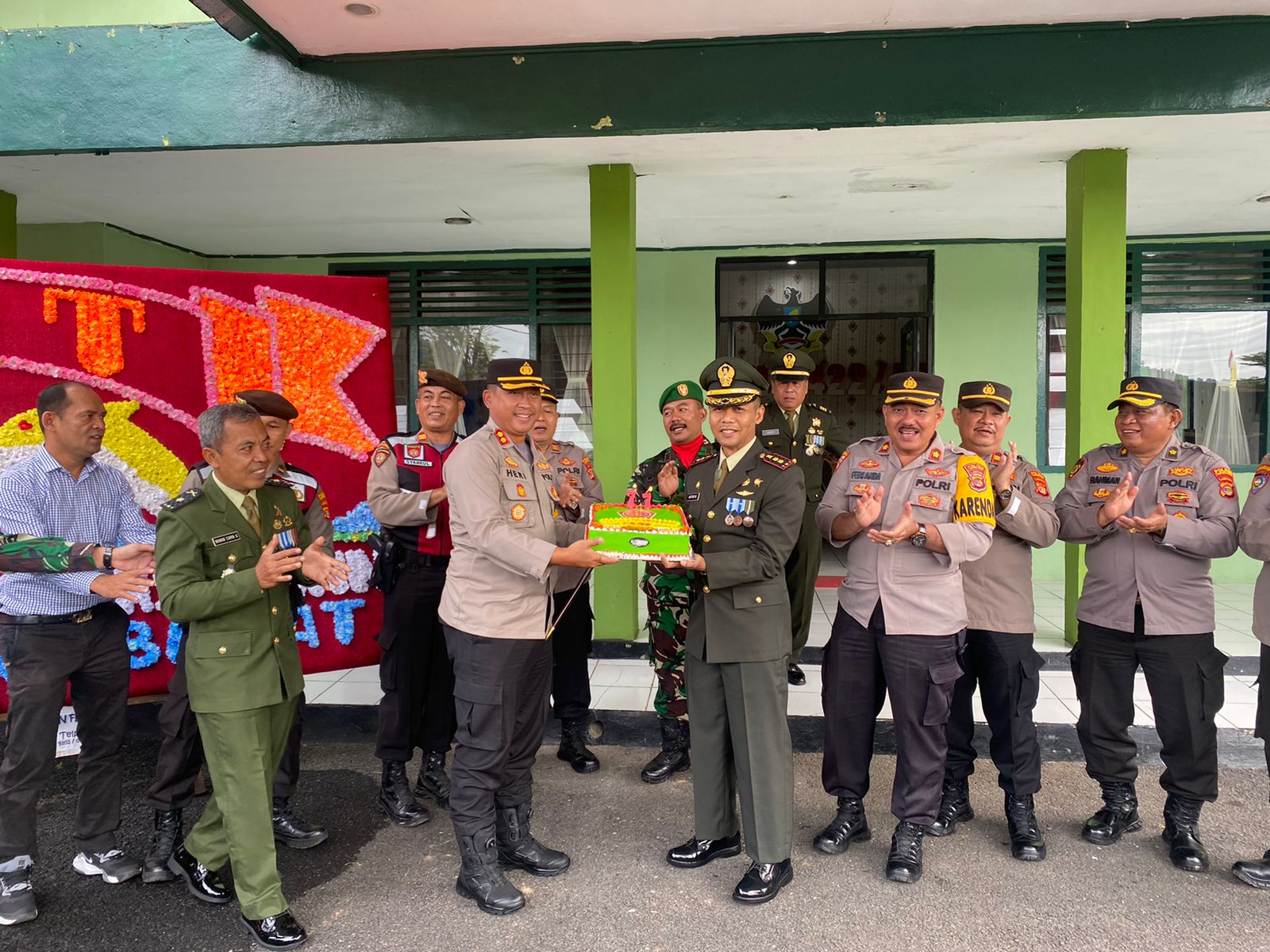 LIWA – Kepala Kepolisian Resort (Kapolres) Lampung Barat, AKBP Heri Sugeng Priyantho dan seluruh pejabat utama serta Kapolsek Balik Bukit kunjungi Kodim 0422/LB dalam rangka Dirgahayu TNI ke-77, Rabu (5/10/2022).