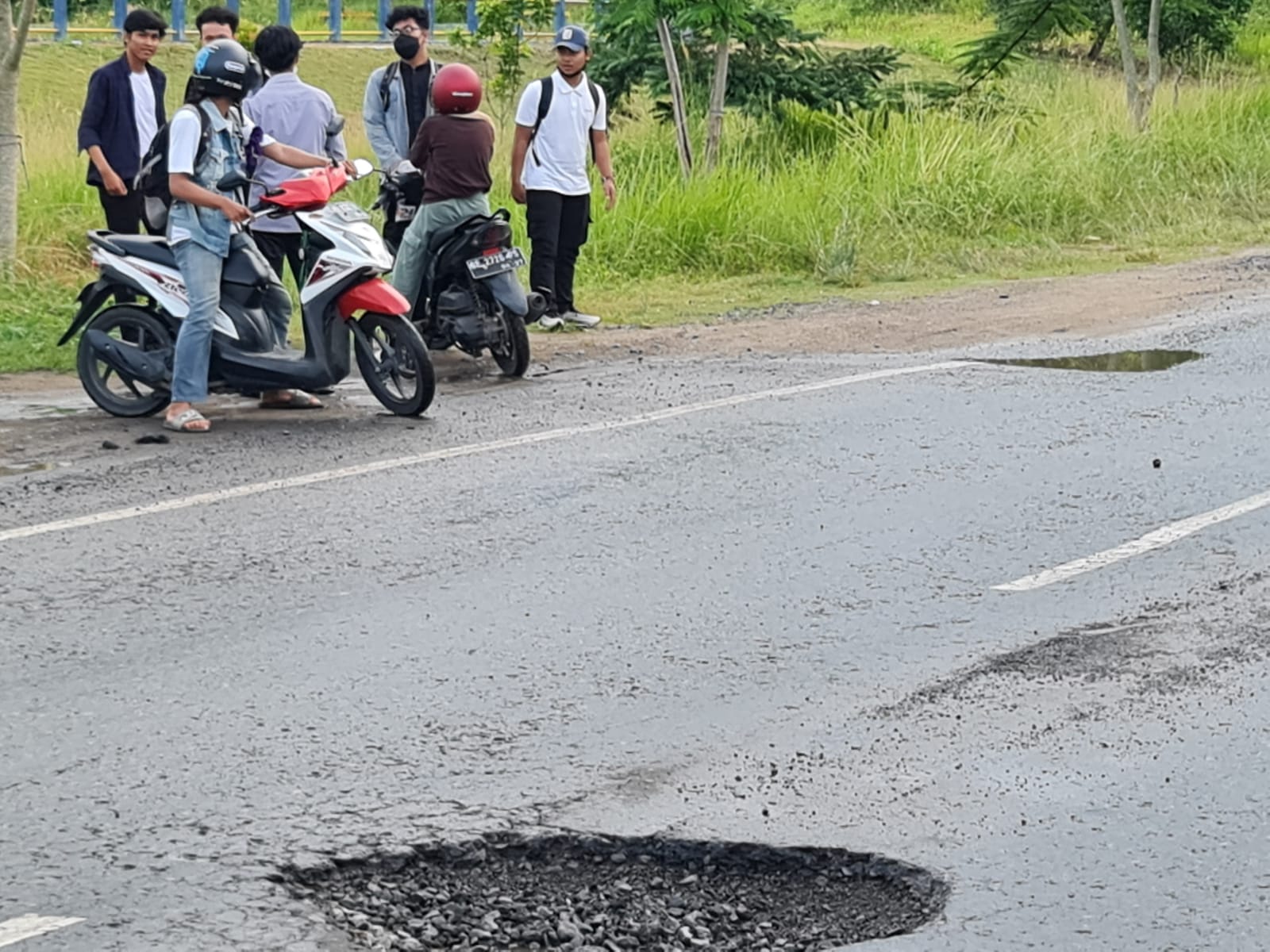 “Beruntung kendaraan dibelakangnya sigap berhenti. Kalau tidak menyebabkan seorang mahasiswi ini tertabrak akibat lubang,” jelasnya.