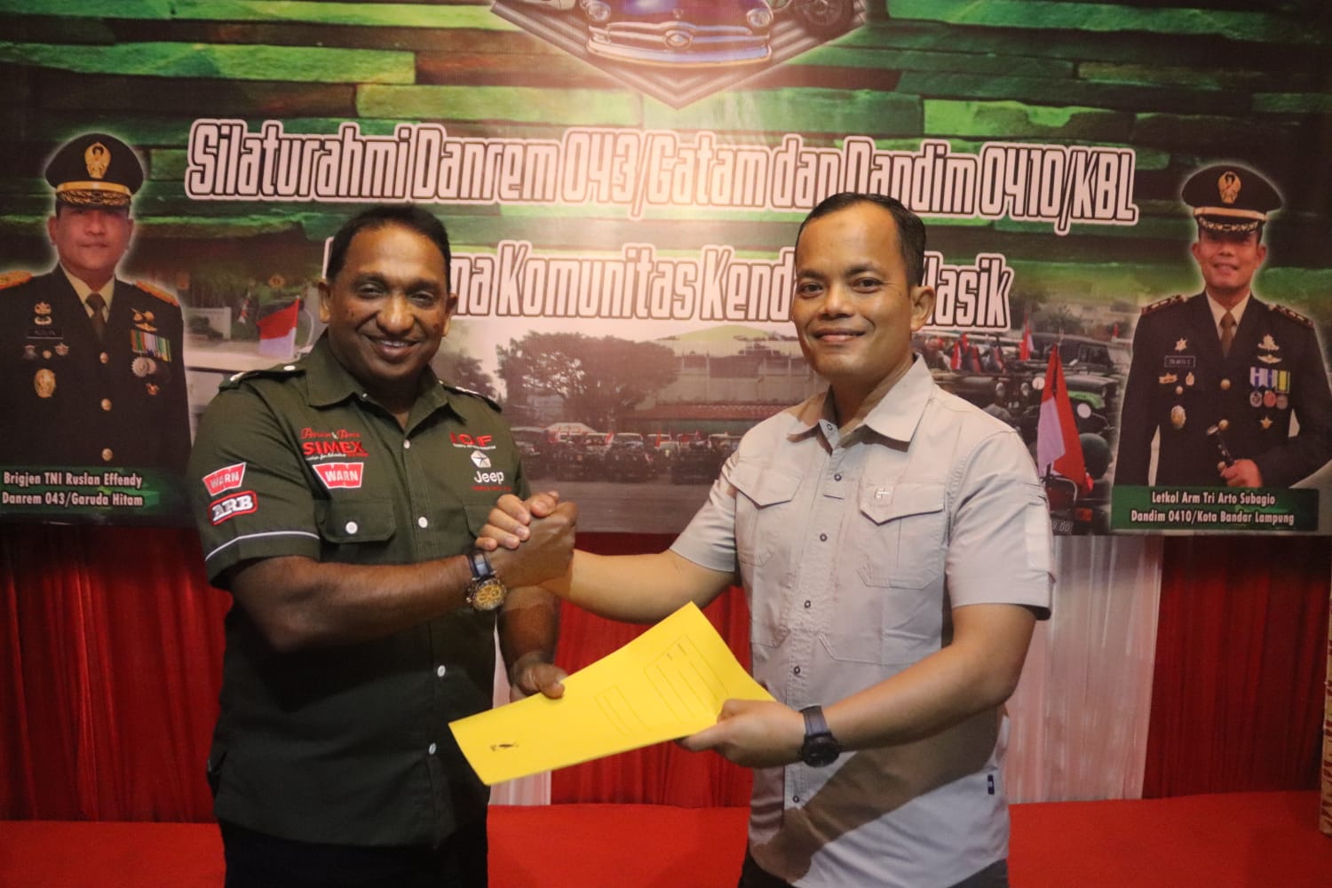 Kegiatan ini sekaligus mengukuhkan Dandim 0410 KBL Letkol Arm Tri Arto Subagio sebagai ketua umum Komunitas Mobil Motor Klasik Lampung (KM²KL)