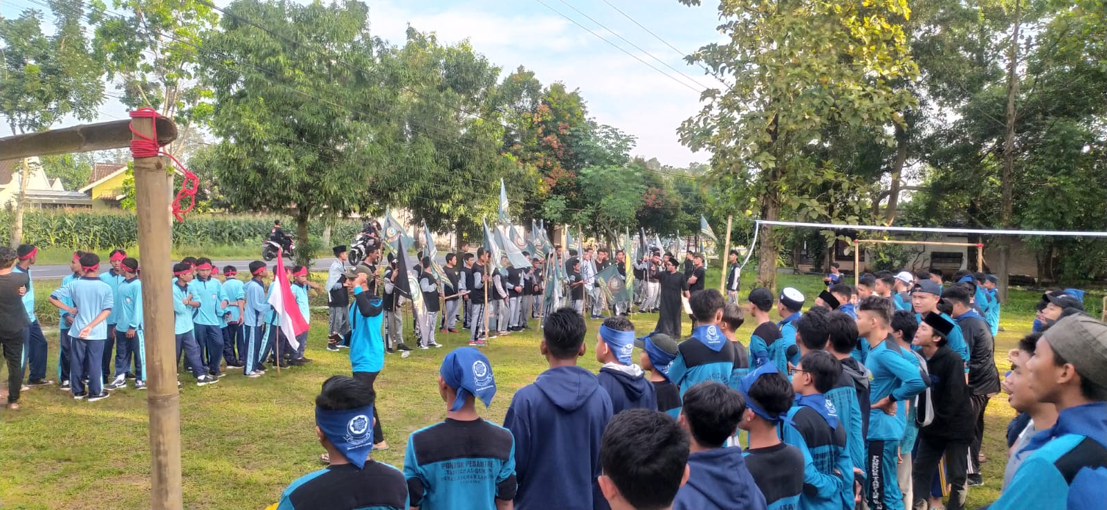 Meskipun pembukaan dalam keadaan hujan santri semangat dan antusias dalam mengikuti Mukhoyam Al Qur’an dan pagi hari akan dilanjutkan Apel Hari Santri Nasional.