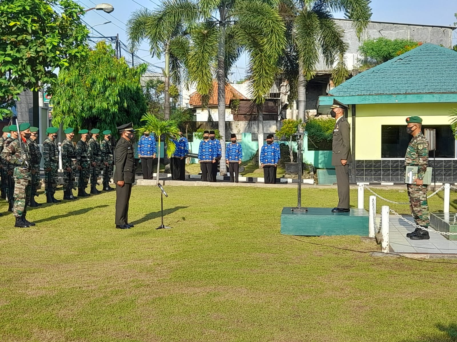 Bertindak selaku inspektur upacara Kastaf Kodim 0736/Batang Mayor Inf Slamet Muchadi dan diikuti oleh para Perwira, Bintara, Tamtama dan PNS Kodim Batang.