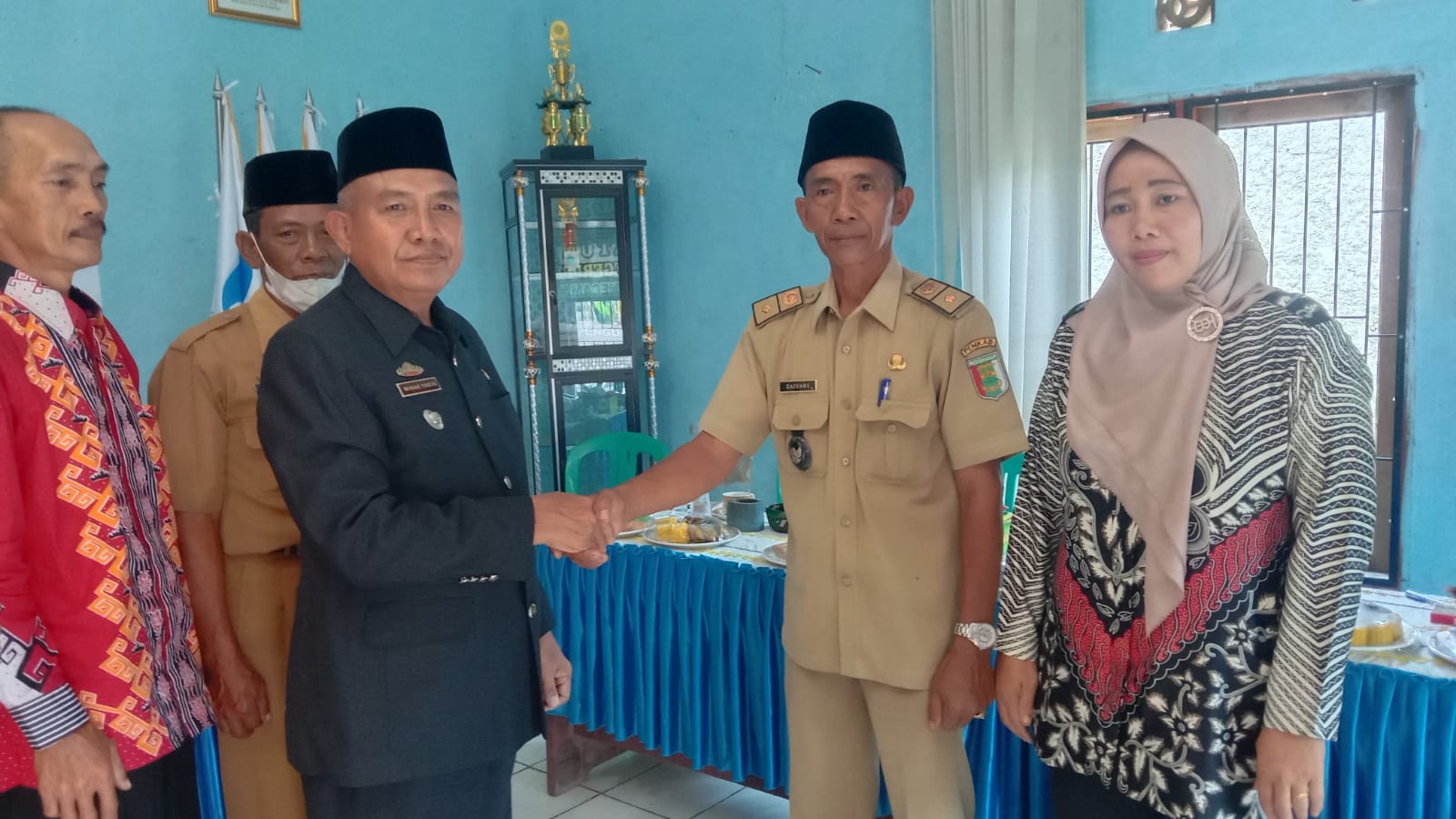 GEDONGTATAAN – Camat Kedondong, Minak Yakin, memimpin serah terima jabatan kepala Desa Way Kepayang sesuai keputusan Bupati Pesawaran nomor 438/IV.II/HK 2022, di balai desa setempat, Senin (31/10/2022).