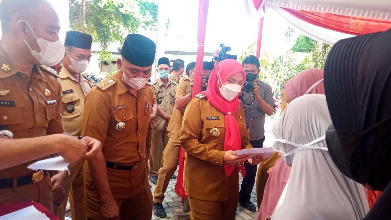 BANDAR LAMPUNG – Wali Kota Bandar Lampung, Eva Dwiana, membagikan insentif guru ngaji ke 20 kecamatan yang ada di Kota Tapis Berseri, Selasa (1/11/2022)