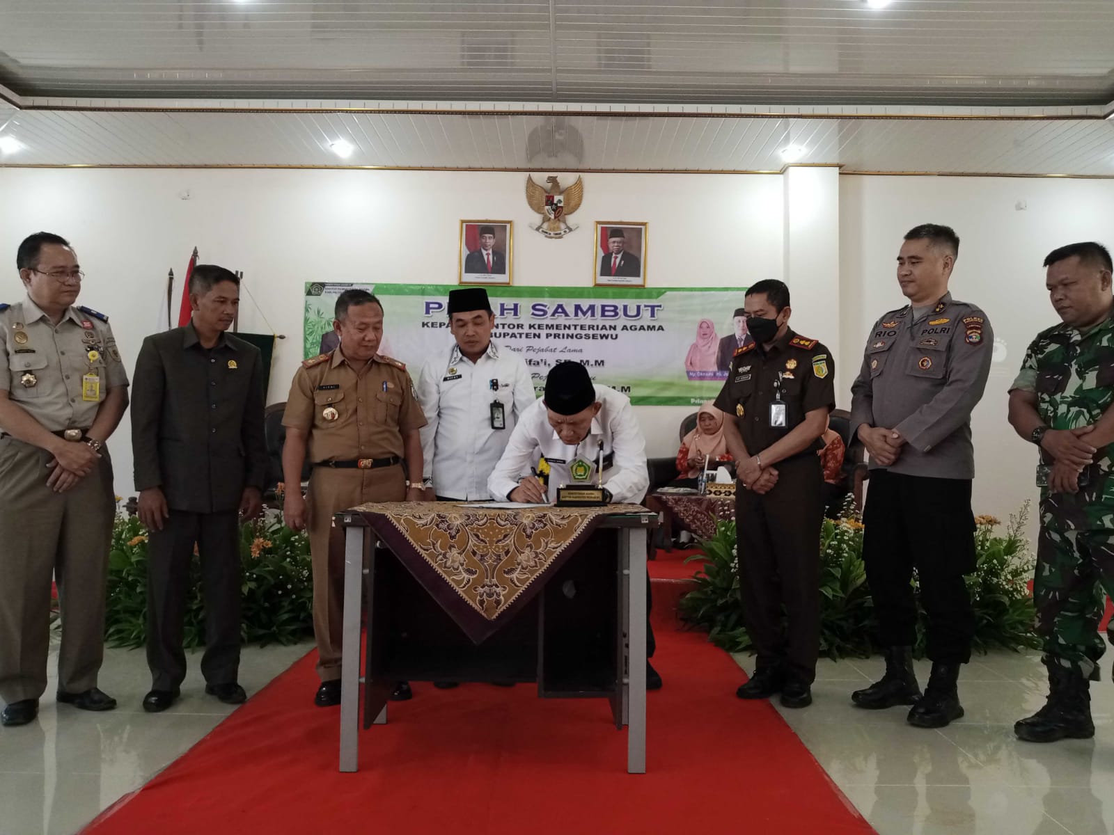 Sertijab Kakandepag Pringsewu di hadiri Staf Ahli Bupati Pringsewu Bidang Pemerintahan, Hukum dan Politik, Hipni, DPRD, Polres Pringsewu, Dandim 0424/TGM, Kajari Pringsewu dan jajaran Forkopimda serta para pimpinan ormas Islam dan tokoh-tokoh lintas agama Kabupaten Pringsewu.