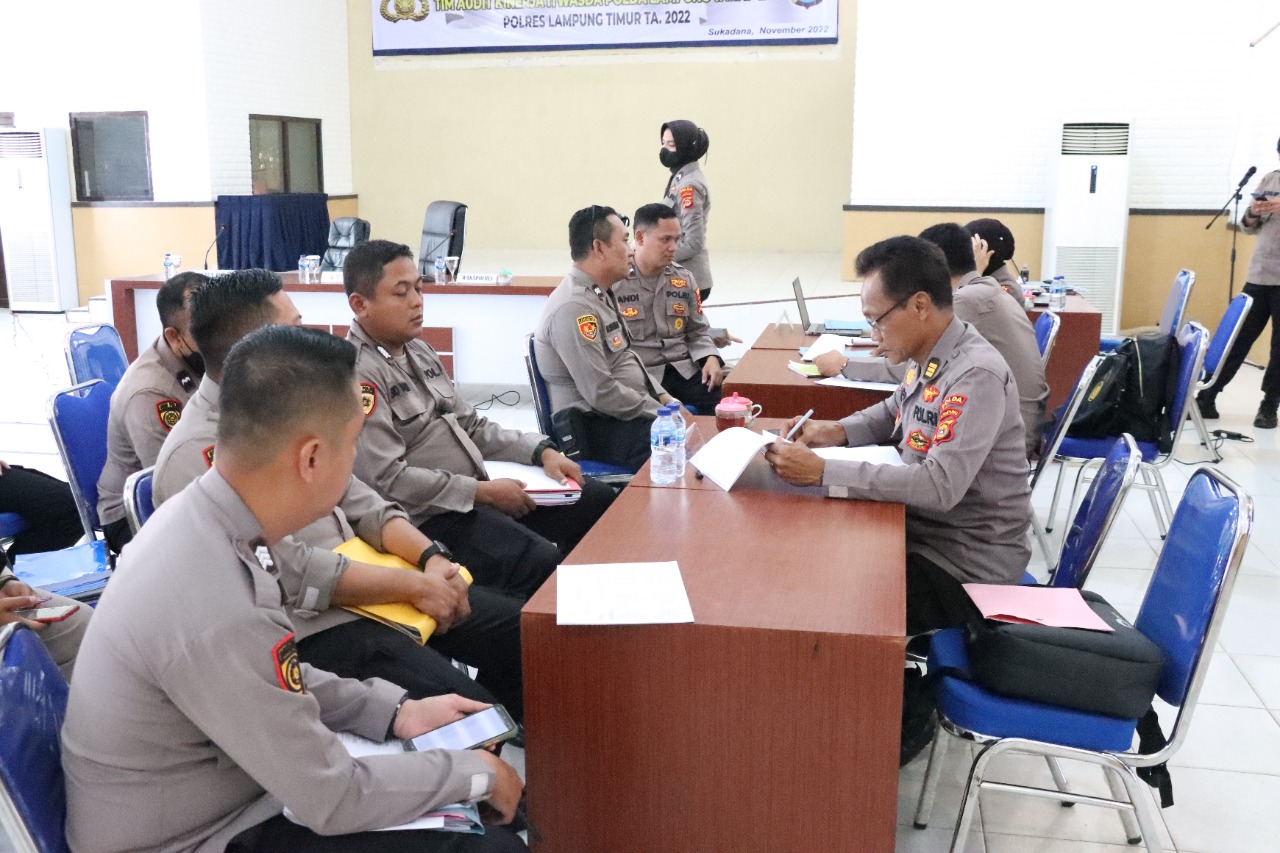SUKADANA – Polres Lampung Timur menerima kunjungan kerja tim Irwasda Polda Lampung yang melaksanakan audit kinerja tahap II tahun 2022 tentang aspek pelaksanaan dan pengendalian, Selasa (1/10/2022).