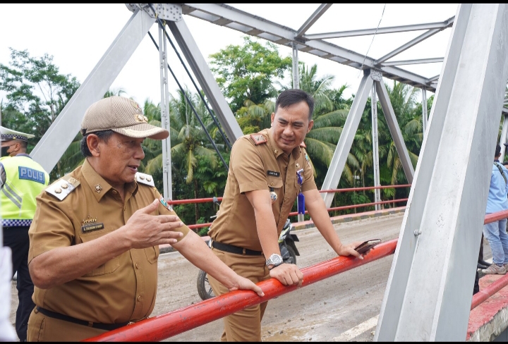 Selanjutnya Wakil Bupati juga meninjau kondisi Jembatan Sanggaruga yang hampir putus di Pekon Baturaja Pugung.