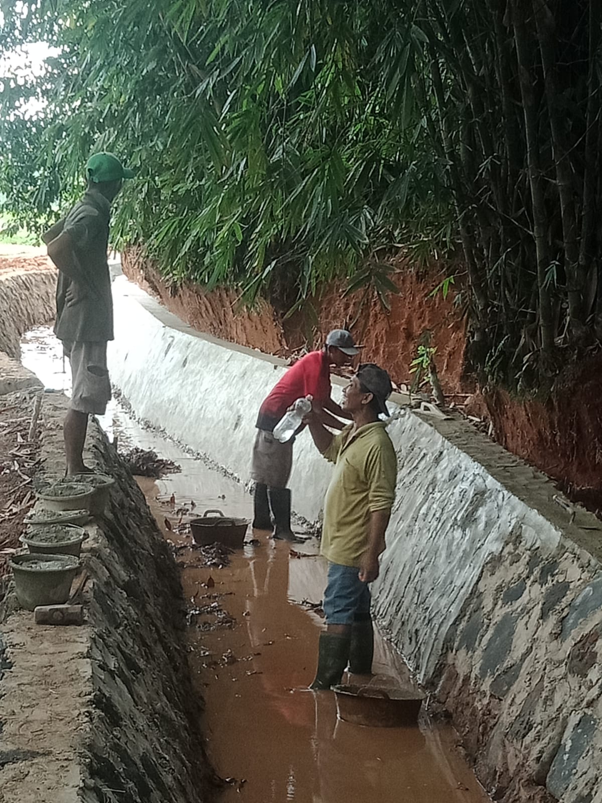 Saat tim AWPI melihat langsung, kata Herizal, tim bertemu dengan salah satu pengawas tehnik pekerjaan dari pihak kontraktor dan beberapa pekerja yang sedang melakukan pekerjaan pemasangan material pelapis pada jaringan irigasi.