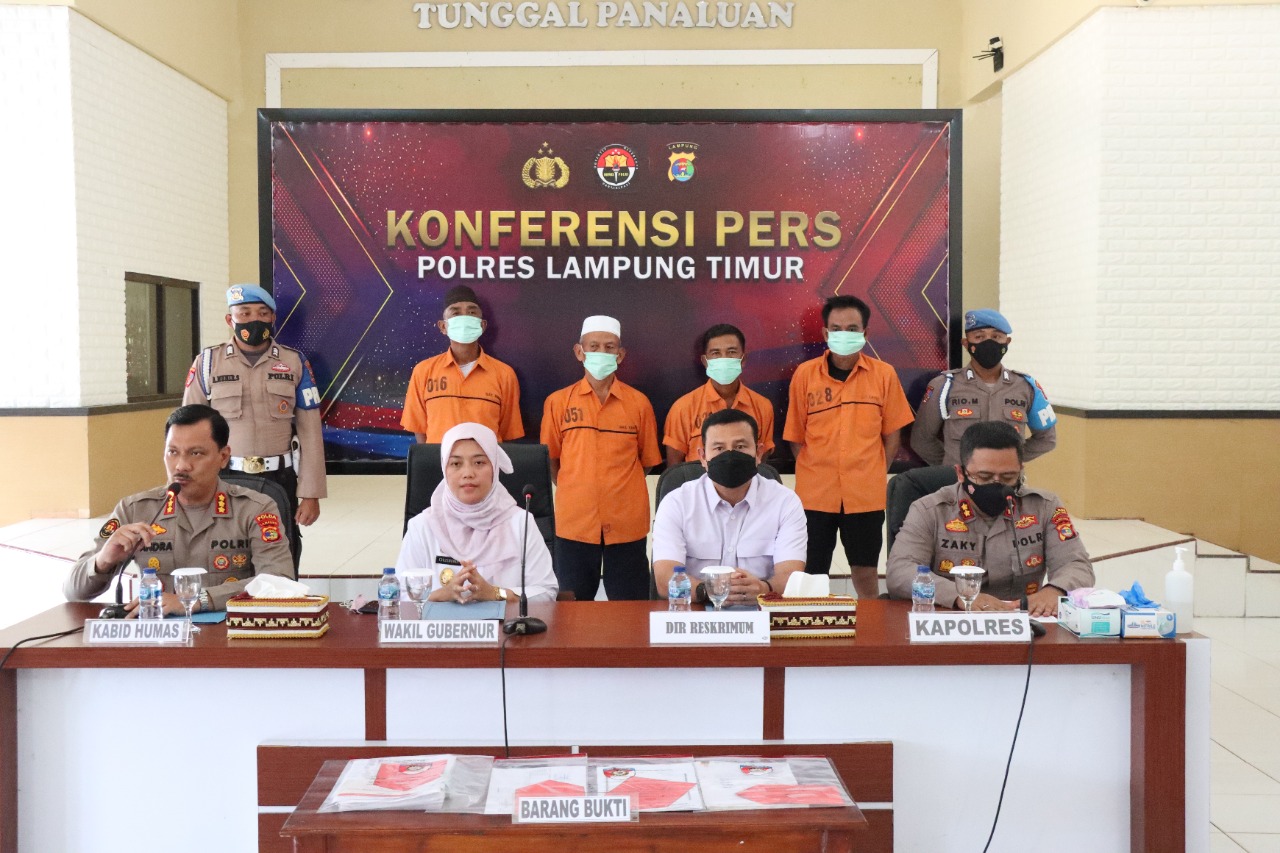 Hal itu terungkap saat menggelar konferensi pers, pada Rabu (23/11/2022), oleh Kabid Humas Polda Lampung Kombes Pol Zahwani Pandra Arsyad, bersama Ketua Kwartir Daerah yang juga Wakil Gubernur Lampung Chusnunia, Direskrimum Polda Lampung Kombes Pol Reynold Hutagalung, dan Kapolres Lampung Timur AKBP Zaky Alkazar Nasution.