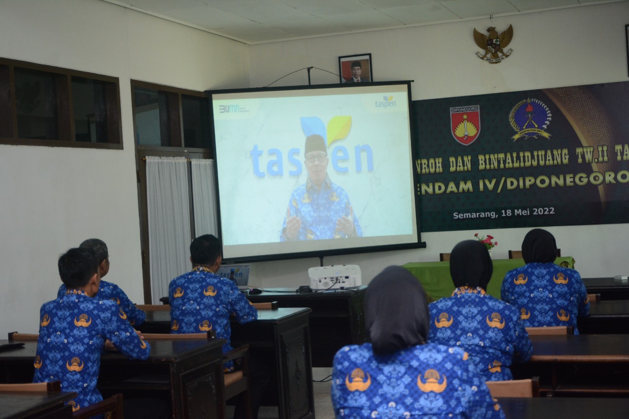 SEMARANG – Memperingati HUT Korps Pegawai Republik Indonesia (Korpri) ke-51, anggota Korpri Pendam IV/Diponegoro mengikuti upacara secara virtual dari Kementerian Sekretariat Negara (Kemensetneg) Jakarta, yang dipimpin oleh penasihat Korpri Kemendikbudristek, Suharti, Selasa (29/11/2022).