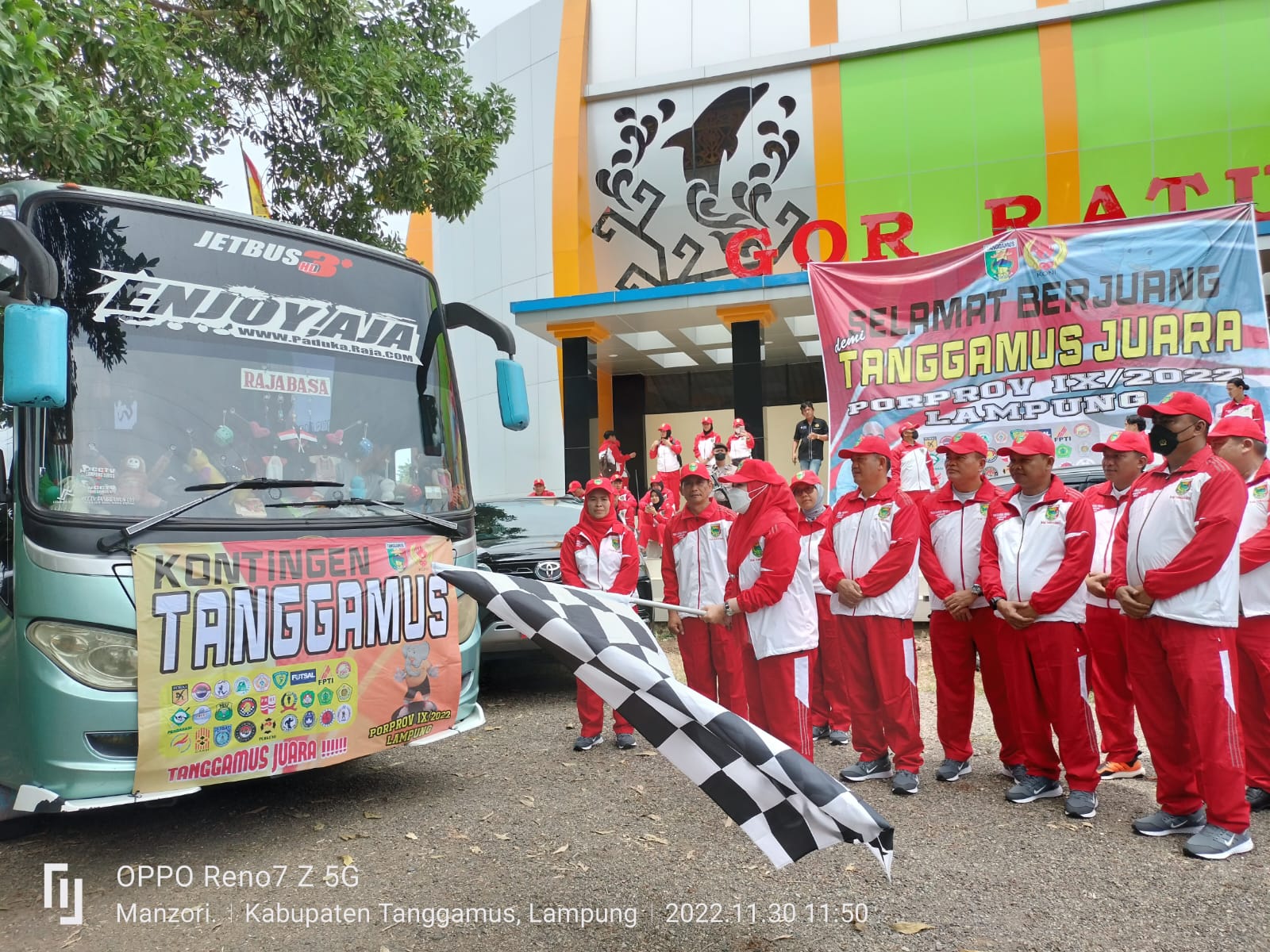 KOTAAGUNG – Bupati Dewi Handajani melepas kontingen Kabupaten Tanggamus menuju Porprov IX Tahun 2022, di GOR Ratu Pekon Kotaagung, Rabu (30/11/2022).