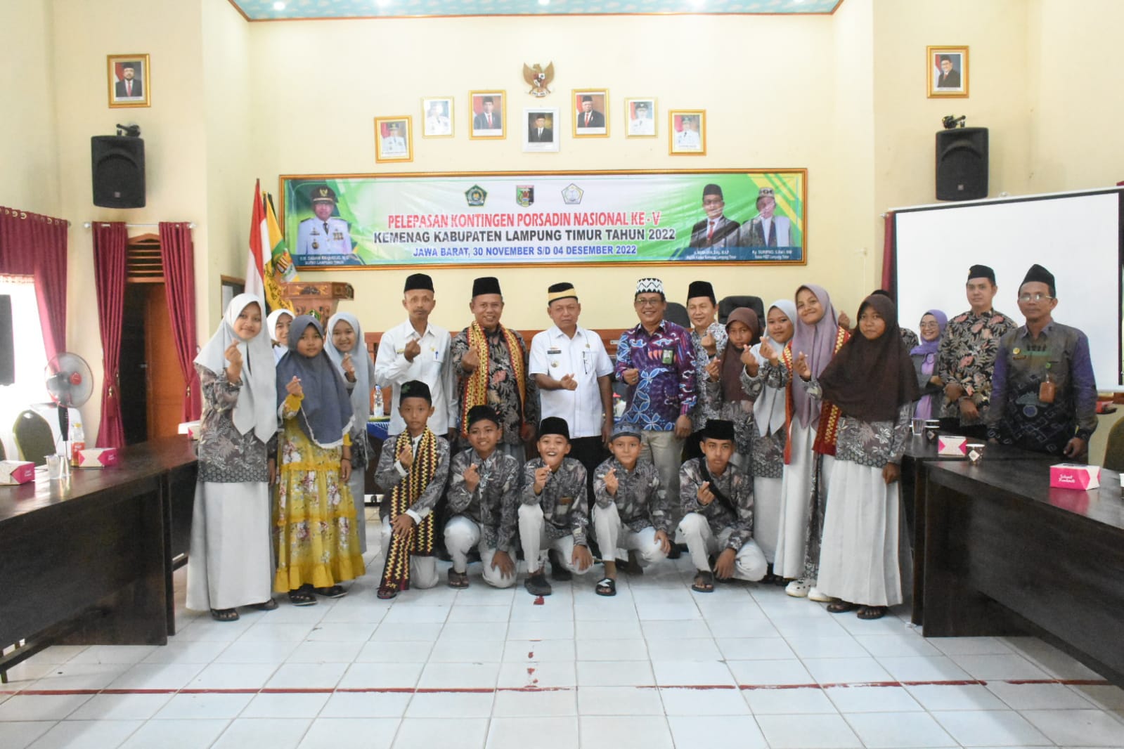 SUKADANA – Bupati Dawam Rahardjo, melepas para peserta lomba Pekan Olahraga dan Seni Madrasah Diniyah Nasional (Porsadinas) Kabupaten Lampung Timur, di Aula Kementerian Agama, Rabu (30/11/2022).