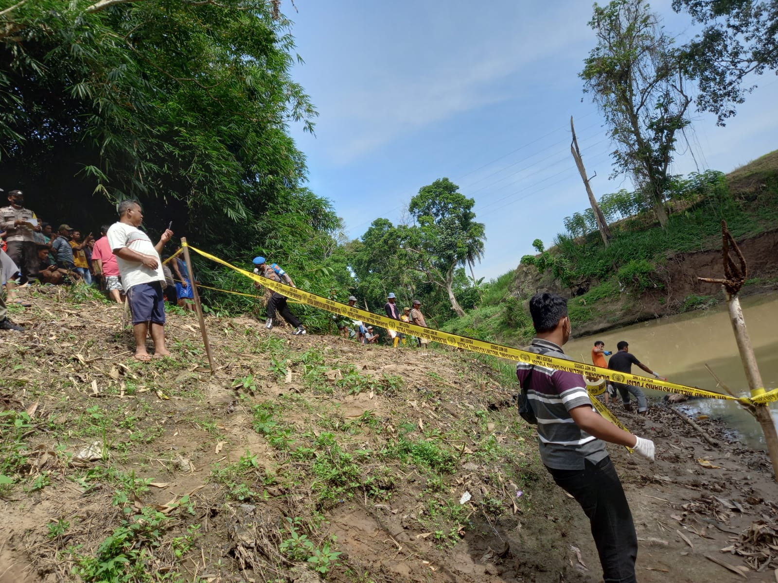 Dari sekitar lokasi penemuan mayat, petugas mengamankan tas berisi pakaian, yang diduga milik korban.