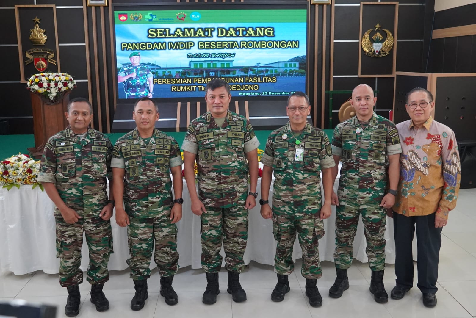 MAGELANG – Pangdam IV/Diponegoro Mayjen TNI Widi Prasetijono meresmikan Gedung Instalasi Pendidikan, Renovasi Gedung Unit Kemoterapi, Ruang Melati dan Bougenvile, Poliklinik Instalwatlan sekaligus melakukan peletakan batu pertama Gedung Radiologi, CSSD dan OK di Rumkit TK. II dr. Soedjono. Jum’at (23/12/2022).