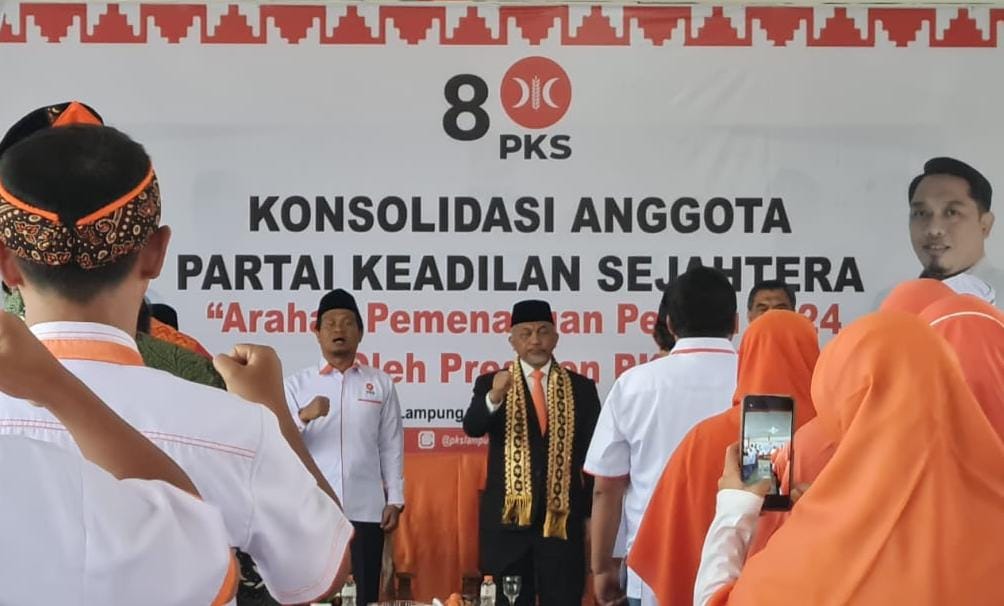 KOTABUMI – Presiden Partai Keadilan Sejahtera (PKS) Ahmad Syaikhu memberikan arahan dalam agenda Konsolidasi Anggota Partai Keadilan Sejahtera yang digelar di Aula DPTD PKS Lampung Utara, Sabtu (24/12).