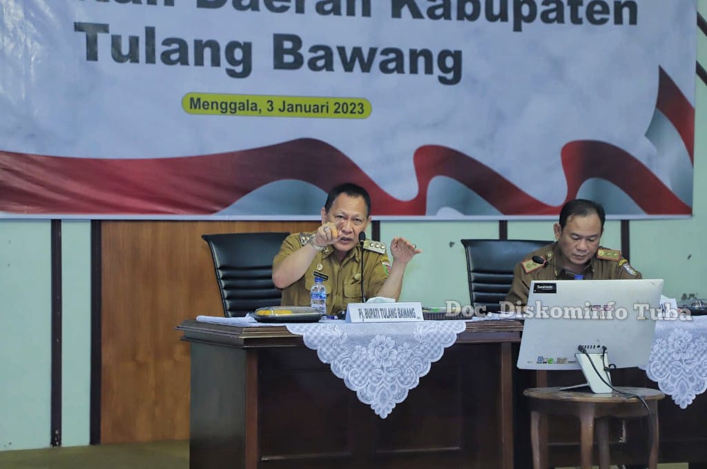 MENGGALA – Dalam rangka meningkatkan profesionalitas, kualitas, kapasitas dan kapabilitas ASN Kabupaten Tulang Bawang, Pj Bupati Qudrotul Ikhwan, menggelar rapat koordinasi bersama seluruh pejabat tinggi pratama dan administrator, Selasa (3/1/2023)