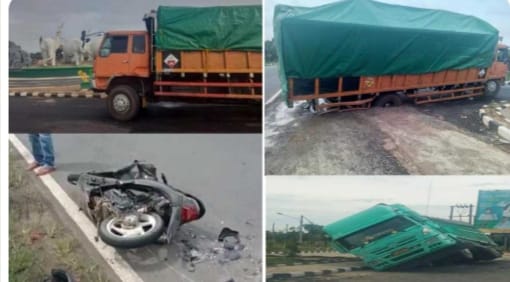 Tak lama setelah terjadi mobil ambles di depan rumdis Bupati Lampung Timur, juga terjadi laka lantas motor Honda Beat yang menyeruduk mobil truk dari belakang.