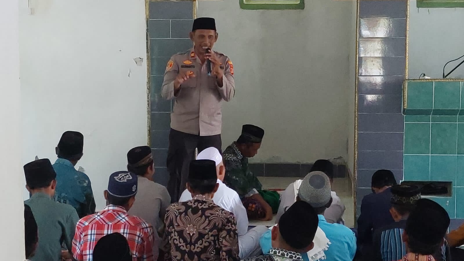 GEDONGTATAAN – Hari kedua program Curhat Jumat, Kapolsek Gedongtataan Kompol Harpan, sambangi Desa Tresnomaju, di Masjid Jami Baitussalam, Kecamatan Negeri Katon, Jumat (6/1/2023).