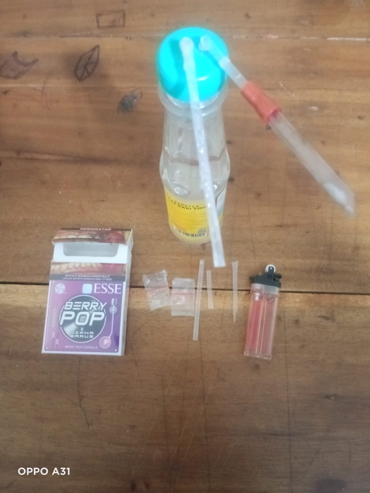 Dari tangan tersangka juga diamankan barang bukti berupa dua buah plastik klip kecil berisi sabu-sabu, berikut alat hisapnya.