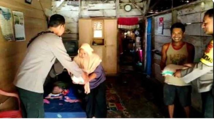 Kedatangan Bhabinkamtibmas untuk memberikan motivasi agar tetap semangat menghadapi ujian yang sedang dialami dan disela-sela itu kami juga memberikan bantuan berupa paket sembako dan tali asih.