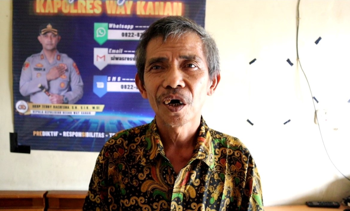 WAY KANAN – Sarmudin (57), orang tua kandung korban yang bernama Diah Sahrani berusia 15 tahun, warga Dusun Way Sawah, Kampung Beringin Jaya, Kecamatan Rebang Tangkas, Way Kanan, yang hilang tidak menyangka anaknya berhasil ditemukan.