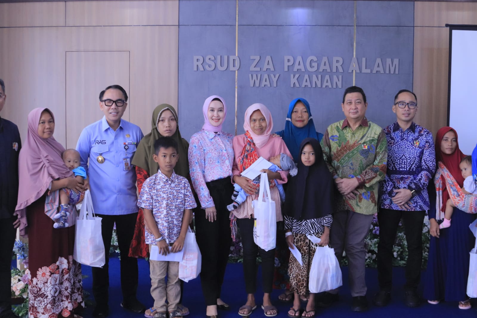 WAY KANAN – Bupati Way Kanan Raden Adipati Surya, menghadiri kegiatan bakti kesehatan operasi bibir sumbing dan celah langit-langit gratis.