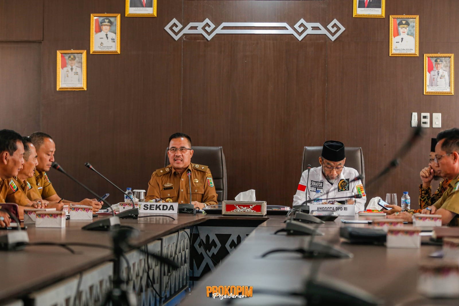 GEDONGTATAAN – Sekretaris Daerah Kabupaten Pesawaran Wildan, terima kunjungan kerja anggota DPD RI Dapil Provinsi Lampung di Aula Teluk Ratai Pemkab setempat, senin (20/2/2023).