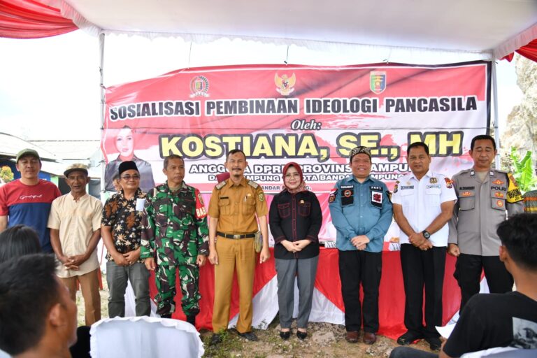 BANDAR LAMPUNG – Anggota Dewan Perwakilan Rakyat Daerah (DPRD) Provinsi Lampung sekaligus Bendahara DPD PDI Perjuangan Lampung meggelar sosialisasi pembinaan Ideologi Pancasila guna menguatkan kembali empat pilar kebangsaan Indonesia, di Kelurahan Bumi Waras, Kecamatan Bumi Waras, Kota Bandar Lampung, Senin (21/2/2023).