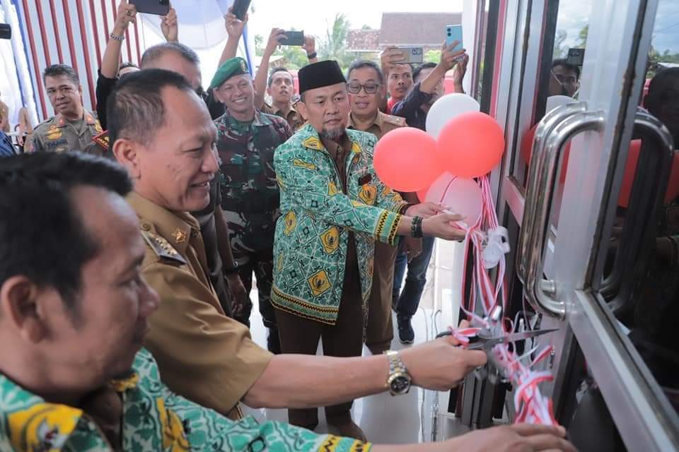 MENGGALA – Penjabat Bupati Qudrotul Ikhwan, meresmikan gedung APDESI Kabupaten Tulang Bawang di Kampung Cakat Raya, Kecamatan Menggala Timur, Selasa (28/2/2023).