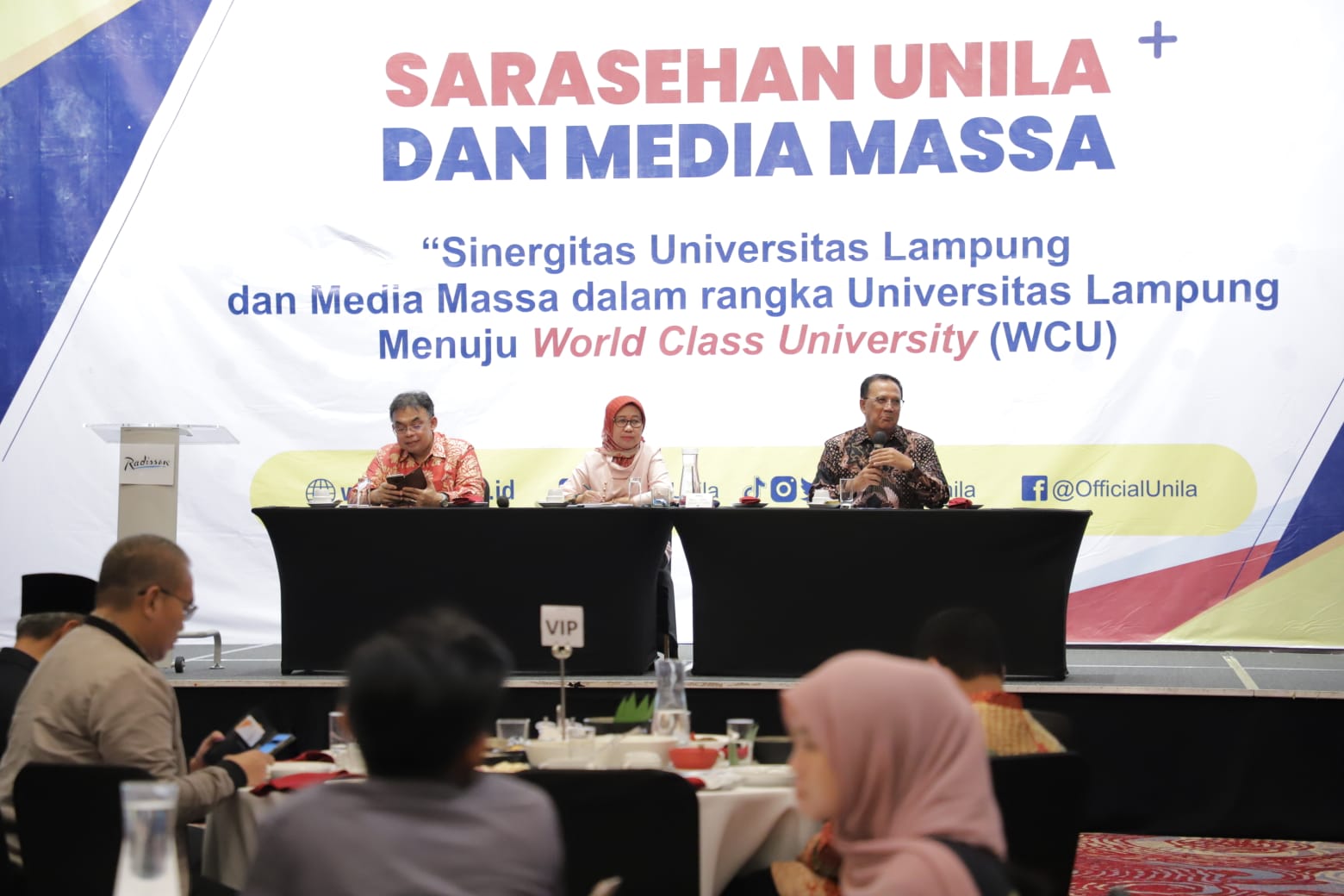 BANDARLAMPUNG – Universitas Lampung (Unila) menggelar sarasehan dengan tema “Sinergitas Universitas Lampung dan Media Massa dalam rangka Universitas Lampung menuju World Class Universitas (WCU)” di Hotel Radisson Bandar Lampung, Selasa (28/2/2023) malam.