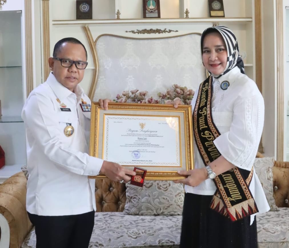 Penghargaan diserahkan kepada Riana Sari Arinal melalui Kepala Dinas Pendidikan dan Kebudayaan Provinsi Lampung Sulpakar di Kantor TP PKK Provinsi Lampung.