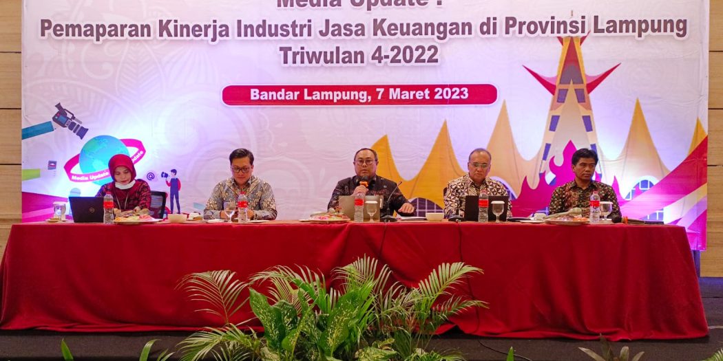 “Secara year on year (yoy), penyaluran pembiayaan BUS/UUS meningkat sebesar Rp667 Miliar atau sebesar 20,42% dan melalui BPRS meningkat sebesar Rp94 Miliar atau sebesar 16,08%. Pembiayaan yang meningkat signifikan perlu diiringi dengan penguatan ekosistem ekonomi syariah yang terdiri dari industri halal, jasa keuangan syariah, keuangan social Islam dan Sektor Religius.” ungkap Kepala OJK Provinsi Lampung, Bambang Hermanto dalam acara Media Update Perkembangan Industri Jasa Keuangan di Provinsi Lampung Triwulan IV 2022, bersama insan media pada Selasa (7/3).