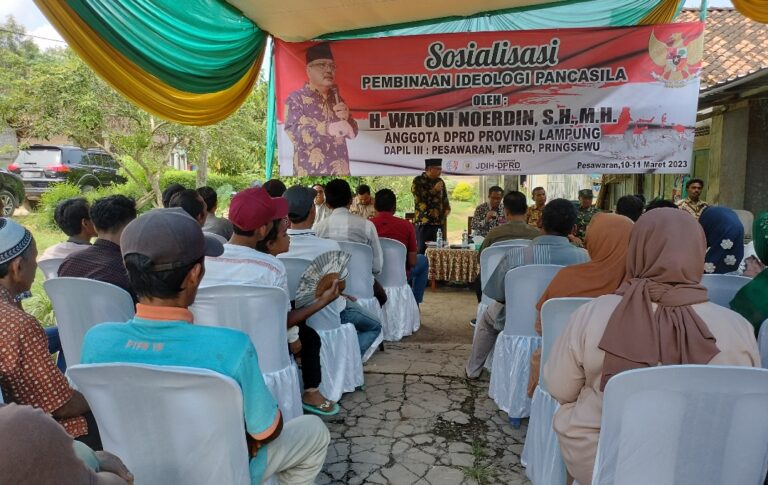 “Jangan sampai, ideologi bangsa kedepan pudar. Karena, yang namanya ideologi pancasila sudah kokoh dan menguatkan mengakomodir semua unsur, rasa, agama, dan golongan,” kata Watoni Noerdin saat Sosialisasi Pembinaan Ideologi Pancasila di Desa Taman Sari, Kecamatan Gedong Tataan, Kabupaten Pesawaran. Sabtu (11/03/2023).