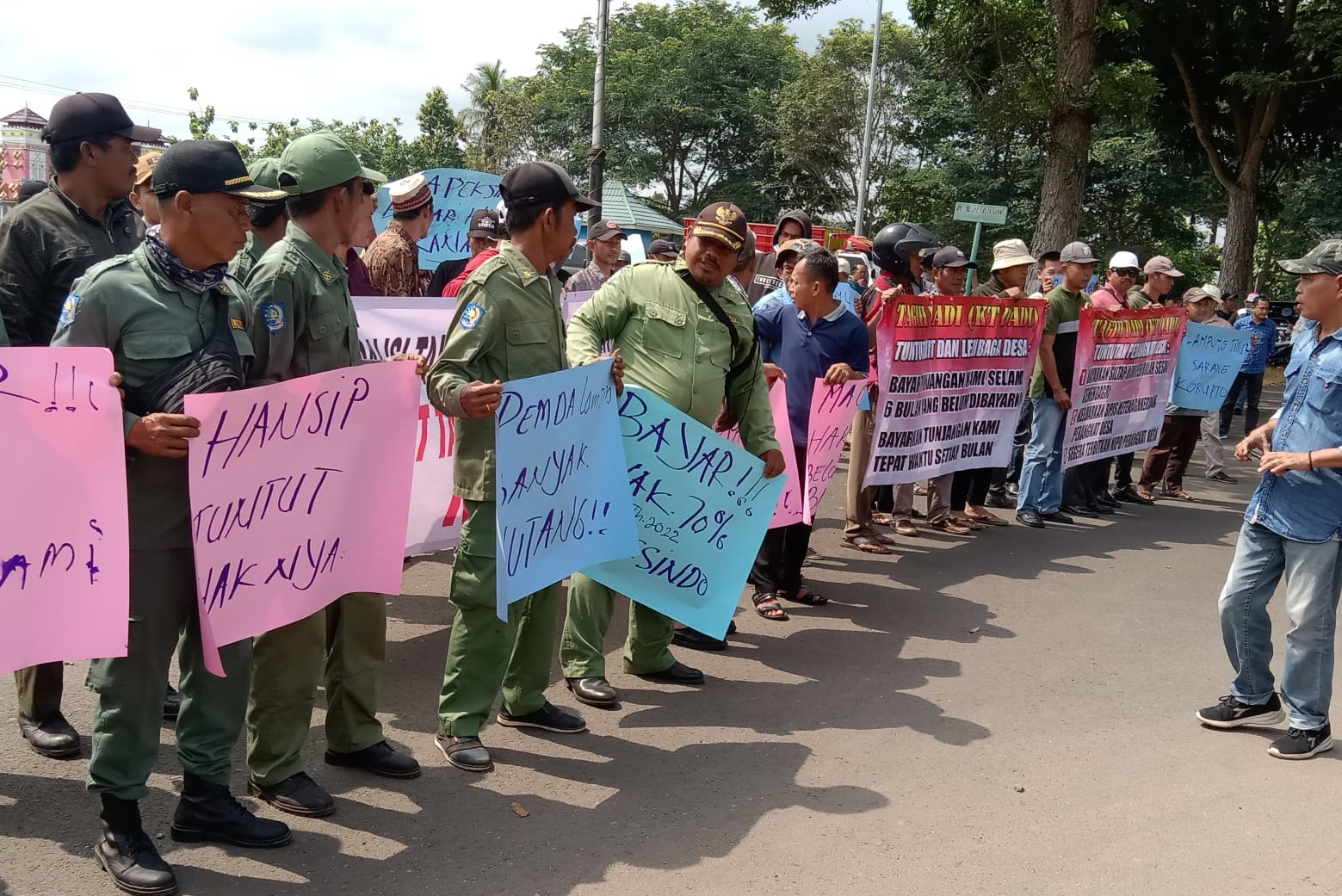 Tuntutan itu disampaikan koordinator massa aksi, Fauzi Genta, mewakili ratusan massa yang menamakan diri sebagai Aliansi Tagih Dawam-Azwar Hadi (DA-DI).