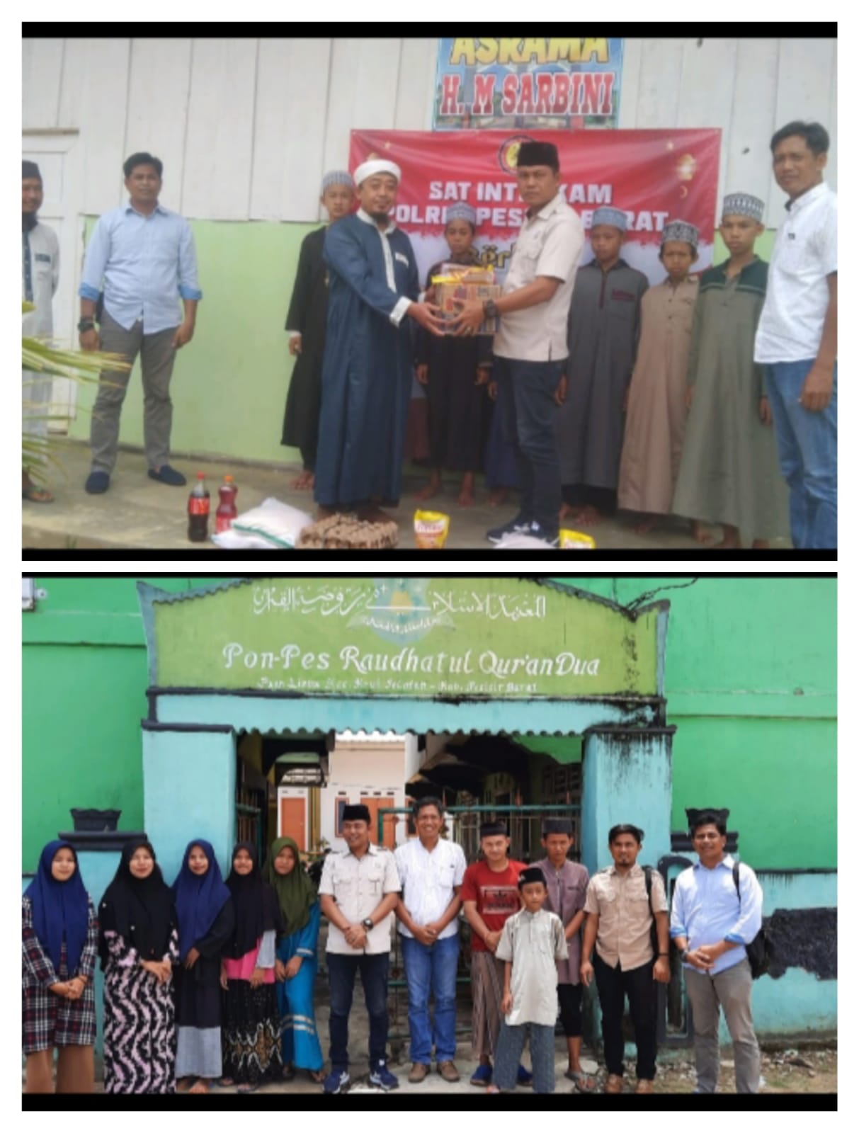 KRUI – Sat Intelkam Polres Pesisir Barat memberikan tali asih berupa sembako di Pondok Pesantren Al Fatah, Pekon Way Suluh, Pesisir Tengah, dan Pondok Pesantren Raudhatul Quran Dua di Pekon Lintik, Krui Selatan, Kabupaten Pesisir Barat, Rabu (29/3/2023).