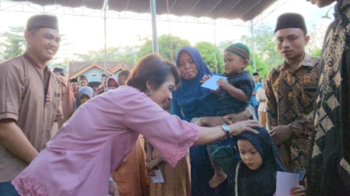 Mesuji – Anggota DPRD Lampung Budhi Condrowati bersama pegiat petani milenial Lampung Dwinan Rahmandi yang di wakili oleh Dedi dan Imron yang merupakan “Kanca Dwinan” atau Teman Dwinan dan memberikan santunan kepada lansia dan anak yatim piatu yang berada di Desa Margo Bakti, Kecamatan Way Serdang, Kabupaten Mesuji.