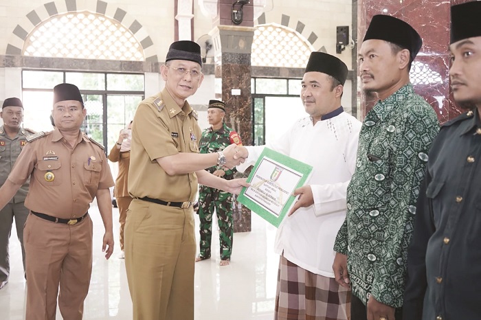 PRINGSEWU – Penjabat Bupati Pringsewu Adi Erlansyah menyerahkan bantuan keagamaan kepada sejumlah rumah ibadah dan lembaga keagamaan di Kecamatan Pardasuka. Bantuan diberikan secara simbolis kepada Masjid Baiturrahim Pujodadi, Masjid Khoirul Huda Sukodadi, Pujodadi, Mushola Nurul Huda Kp. Tengah, Sidodadi, TPQ Al-Qur’aniyah Hidayatussholihin Sinar Banten, Wargomulyo serta 13 lembaga keagamaan lainnya senilai Rp155 juta.