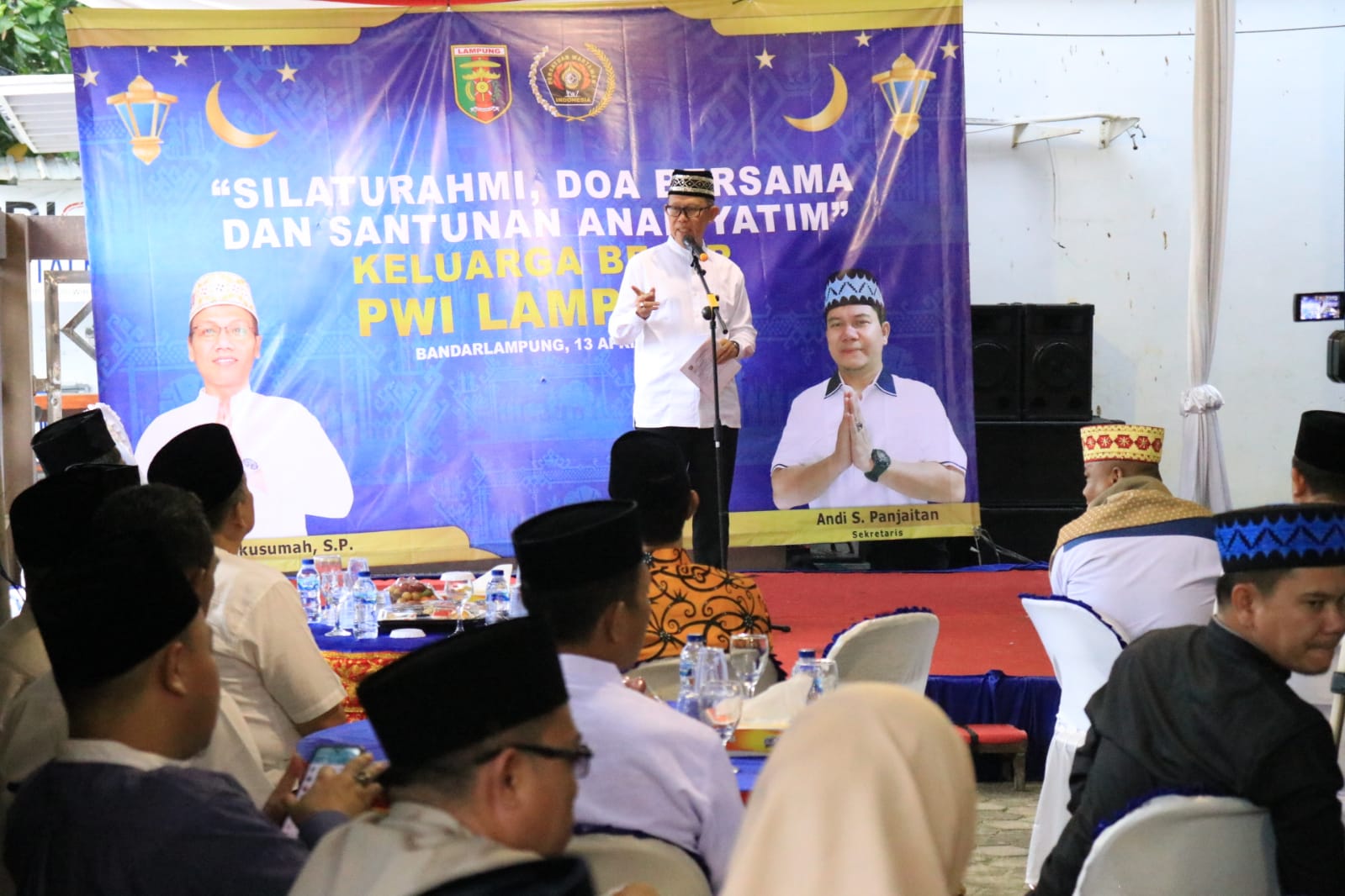 Dalam kegiatan tersebut, Ketua PWI Provinsi Lampung didampingi Sekdaprov Lampung memberikan santunan bagi 50 anak yatim dari 2 panti asuhan.