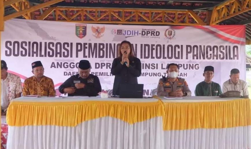 Lampung Tengah – Anggota DPRD Provinsi Lampung Ni Ketut Dewi Nadi, melaksanakan kegiatan Sosialisasi Pembinaan Ideologi Pancasila (PIP) di Kebun Edukasi Perjuangan Simpang Randu, Kampung Sido Binangun, Kecamatan Way Seputih, Kabupaten Lampung Tengah, Sabtu, (15/4/2023).