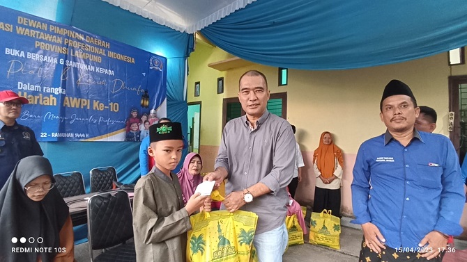 PRINGSEWU – DPC AWPI Kabupaten Pringsewu menggelar buka puasa bersama dengan yatim piatu dan kaum dhuafa. Aksi sosial di bulan yang penuh berkah itu dihadiri Ketua Umum DPP Asosiasi Wartawan Profesional Indonesia, Hengki Ahmat Jazuli, Sabtu (15/4/23).