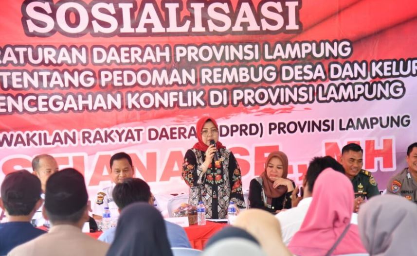 Hal tersebut diungkapkan Anggota DPRD Provinsi Lampung Fraksi PDI Perjuangan, Kostiana melaksanakan sosialisasi peraturan daerah nomor 1 tahun 2016 tentang pedoman rembug desa dan kelurahan dalam pencegahan konflik di Provinsi Lampung, di Way Dadi Kecamatan Sukarame Kota Bandar Lampung, Jumat (5/5/2023).