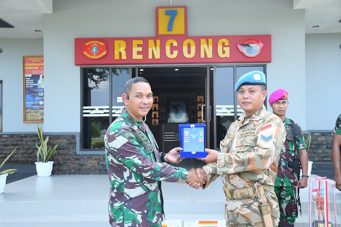 PESAWARAN – Danyonif 7 Mar Letkol Marinir Alex Zulkarnain, S.E,. M.Tr sambut Prajurit Elang Samudera yang tergabung dalam Satgas PBB Di Mako Yonif 7 Marinir. Ketapang, Teluk Pandan, Pesawaran, Rabu (10/05/2023).