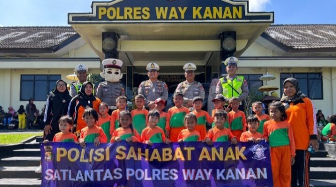 WAYKANAN – Polisi Sahabat Anak (Polsanak) menjadi program pilihan Polres Way Kanan untuk memudahkan anak mengenal rambu-rambu lalulintas sejak usia dini. Lewat kegiatan itu, anak-anak bisa lebih disiplin dan mematuhi segala peraturan lalu lintas guna membantu menciptakan generasi muda yang lebih sadar dan peduli akan keselamatan di jalan raya.