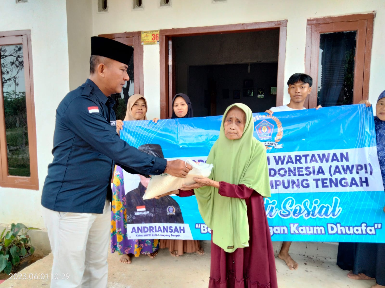 Acara dilaksanakan di Sekratariat DPC AWPI Lamteng, dan bantuan juga diberikan kepada kaum jompo, dan dhuafa di wilayah sekitar, Kamis (01/06/2023).