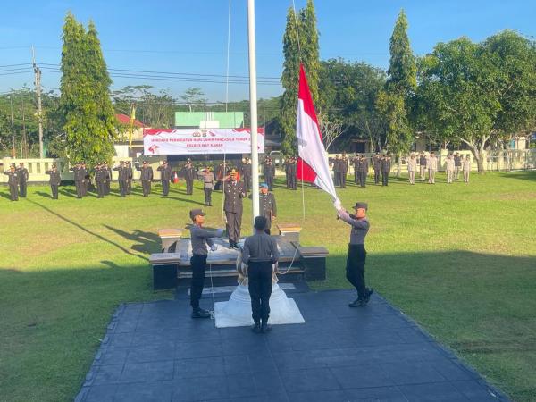 Dalam rangka memperingati hari lahirnya Pancasila tahun 2023, Polres Way Kanan menggelar upacara di lapangan apel Mako Polres Way Kanan, Kamis (01/06/2023).