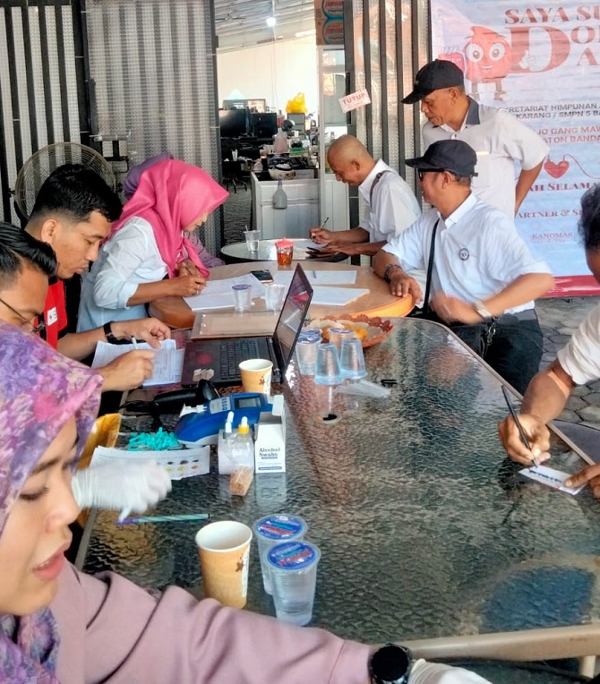 BANDARLAMPUNG – Menyambut Hari Lingkungan Hidup 5 Juni, Himpunan Alumni SMPN 4 Tanjungkarang/SMPN 5 Bandar Lampung menggelar aksi Donor Darah. Kegiatan sosial tersebut dilaksanakan di sekretariat organisasi tersebut, Kelurahan Surabaya, Kedaton, Bandar Lampung, Minggu 4 Juni 2023.