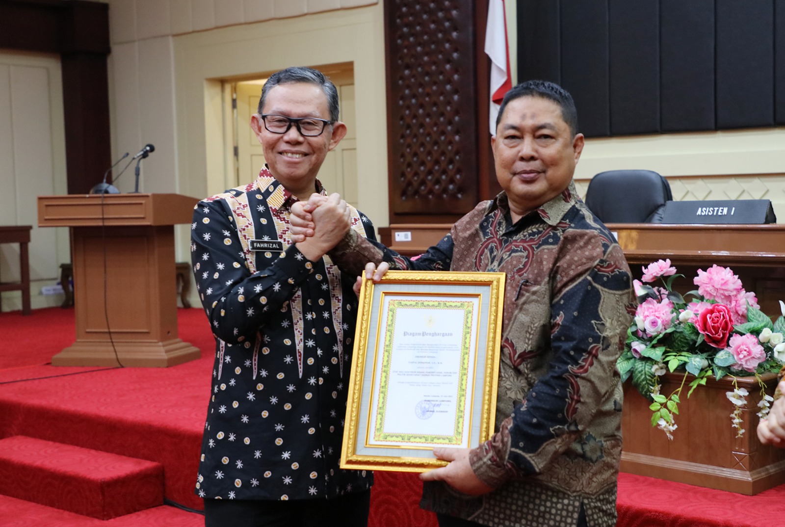 Atas nama Pemerintah Provinsi Lampung, Sekdaprov Fahrizal menyampaikan apresiasi dan ucapan terimakasih kepada Syaiful Dermawan atas kinerja serta loyalitas dan pengabdian yang telah diberikan demi kemajuan Provinsi Lampung.