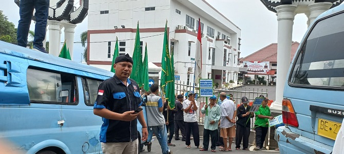 DPP PEMATANK menggelar aksi unjuk rasa di depan Kantor Kejaksaan Tinggi (Kejati) Lampung, Rabu (7/6/23).