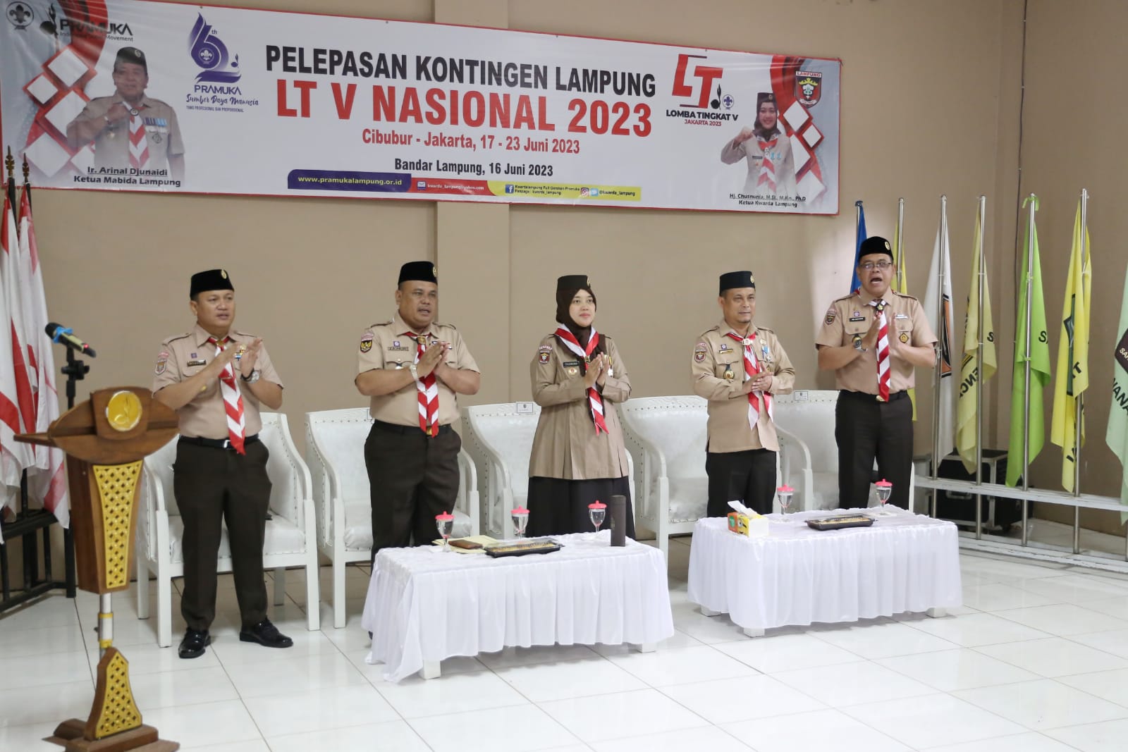 BANDARLAMPUNG – Wakil Gubernur (Wagub) Lampung Chusnunia Chalim melepas Kontingen Pramuka Lampung mengikuti Lomba Tingkat V (LT V) Nasional Tahun 2023, di Bumi Perkemahan Wiladatika, Cibubur, Jakarta, 17- 23 Juni 2023. Pelepasan dilakukan di Kwarda Provinsi Lampung, Jum’at (16/06/2023).