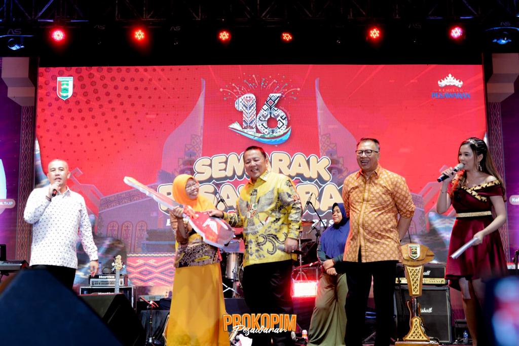 Pesawaran – Bupati Pesawaran Dendi Ramadhona bersama Gubernur Lampung Arinal Djunaidi membuka Acara Malam Puncak Semarak Pesawaran ke- 16 Tahun 2023.