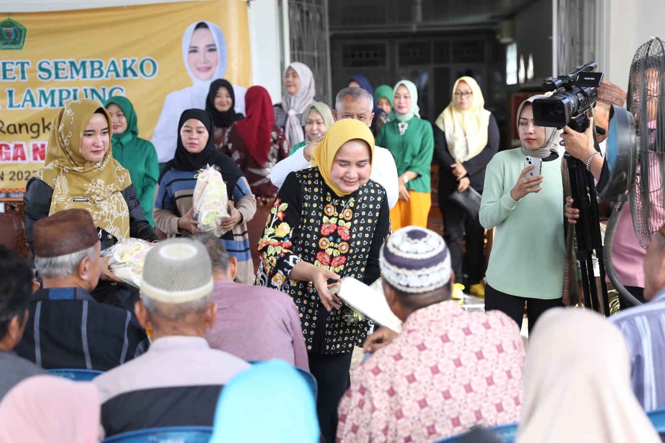 TULANGBAWANG —– Ketua Lembaga Koordinasi Kesejahteraan Sosial (LKKS) Provinsi Lampung Ibu Riana Sari Arinal memberikan ratusan bantuan paket sembako di Kabupaten Tulang Bawang dan Kabupaten Tulang Bawang Barat, Selasa (25/7/2023).